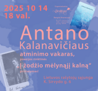 Archyvas :: LŽS ir NŽKA narės Perpetua Dumšienės sumanytos ir sudarytos knygos „Į Žodžio mėlynąjį kalną” pristatymas2025-10-11 ![]() Kviečiame į poezijos ir muzikos renginį Į ŽODŽIO MĖLYNĄJĮ KALNĄ. Susitikime spalio 14 dieną ( antradienį) 18 val. Vilniuje, Rašytojų sąjungoje ( K. Sirvydo g. 6 ) Šis renginys skirtas paminėti poeto Antano Kalanavičiaus 80 metų jubiliejų. Aktorius,Ignas Ciplijauskas skaito eilėraščius iš naujos poeto Antano Kalanavičiaus, knygos „Į Žodžio mėlynąjį kalną", kartu atlieka ir labai originalias savo sukurtas muzikos kompozicijas. Aktorius Martynas Mockevičius skaito tekstus apie poeto gyvenimo patirtis - nuo rugiagėlės žiedo iki giesmės žvaigždynuose belaikės, savo kūrybos dainas atlieka multiinstrumentalistas, dzūkodelikos žanro pradininkas Rokas Kašėta Renginyje dalyvaus ir kūrybinis knygos kolektyvas: Knygos sumanytoja ir sudarytoja, LŽS ir NŽKA narė Perpetua Dumšienė Knygos kaligrafinių iliustracijų autorius dailininkas Albertas Gurskas. Pakvietėme dalyvauti ir rašytojus, kurie rūpinosi Antano Kalanavičiaus knygų parengimu bei leidyba - Valentiną Sventicką, Rimvydą Stankevičių, dailininkus Viktoriją Daniliauskaitę, Petrą Repšį. Prisiminimais dalinsis Antano Kalanavičiaus kurso draugai - rašytojas Bronius Kašelionis, lituanistė Angelė Valienė. Renginio metu bus galima įsigyti ir knygą „Į žodžio mėlynąjį kalną". Renginio dalyviams bus įdomu pajusti - ar kai kurie literatūros kritikai buvo teisūs, jaučiantys čiurlionišką poeto Antano Kalanavičiaus kūrybos dvasią. Pirmasis naujos knygos eilėraštis „Žemės laimė spindulinė " yra įkvėptas Mikalojaus Konstantino Čiurlionio paveikslo REX. Labai vizionieriškas, atveriantis pasaulių kūrimo erdves. Čiurlionioniška dvasia minima ir poeto laiškuose būsimai žmonai, rašytuose iš jo tėviškės Sapiegiškės, esančios Varėnos rajone: ... Matai, laišką rašau prieš tą savo amžinybės pajautimą ... Taigi gyvenam tarp tų nenusakomo liūdesio ir pasiutusio ilgesio kalvų, miškelių ir vieškelių žvyruotų ... Viskas plaukia lyg pro šalį, ir nežinai, ar čia tu, ar žvaigždžių daina ... Čia labai gerai išryškėja čiurlioniška dvasia. Tokiu metu lauki kažko ilgo ir nepabaigiamo ... Apie Antaną Kalanavičių Antano Kalanavičiaus (1945-1992) originalus lietuvių poetas. Nuo pirmosios knygos „Ne akmenys guli" pasirodymo (1994 metais) praėjo trisdešimt metų. Per tą laiką Lietuvos visuomenė jau susipažino su poeto kūryba, skaitytojams žinoma ir Antano Kalanavičiaus gyvenimui bei kūrybai skirta knyga „Dulkėto erškėčio ugny" (autorė Perpetua Dumšienė). 2015 metais pasirodė Antano Kalanavičiaus eilėraščių rinktinė „Dvi saujos laiko". Visas minėtas knygas išleido Lietuvos rašytojų sąjungos leidykla. Sukurta įvairių radijo laidų, televizijos filmų. Poeto kūrybą literatūros vakarų cikle „Poetai ateina" daugelyje Lietuvos miestų pristatė aktorius ir režisierius Rolandas Kazlas. Unikalų spektaklį „Nedingęs: Teatrinis pasivaikščiojimas po poeto Antano Kalanavičiaus gyvenimą ir kūrybą" sukūrė teatras „Labas". Aktorius, poezijos skaitovas Ignas Ciplijauskas, pajutęs su poetu gilią dvasinę giminystę, sukūrė įspūdingą eilėraščių skaitymo dramaturgiją kartu su džiazo ir improvizacijos įžymybėmis - saksofonininku Petru Vyšniausku ir perkusininku Arkadijumi Gotesmanu. Antanas Kalanavičius tituluotas paskutiniu lietuvių poezijos pagoniu, nuošalės poetu, kalbos alchemiku. Norėdami paminėti poeto jubiliejų, subūrėme kolektyvą, kurio visi nariai dirbo be jokio atlygio, įkvėpti poeto ištikimybės savo pašaukimui ir jo brangintoms vertybėms. Kaip grįžt į savo / Žodžio mėlynąjį kalną, / Tenai širdis jau / Amžina žvaigždžių akimirka - šios eilutės ir bus knygos raktas. Knygos pavadinimas „Į žodžio mėlynąjį kalną" atspindi nuolatinį poeto augimą, ištikimybę poeto pašaukimui, pagarbą žodžio kuriamajai galiai. Mėlyna.... Žmonėms, kurie yra nors šiek tiek domėjęsi ezoterika, žinoma, kad spalvų skalės simbolikoje ši spalva simbolizuoja šventumą, dvasinį gyvenimą. Mėlyna spalva valdo V čakrą, iš kurios išeina žodžiai. Ir tikrai, skaitydama Antano kūrybą pastebėjau, kad mėlynos spalvos simbolika jam labai svarbi. Tai tarsi simboliniai kodai, atveriantys didingus pasaulius. Poetas juos įvardija labai pamėgtu tapybišku, muzikaliu žodžiu - sumelsvieji. Ir mūsų kūnai praretėję gniuždydami sutraiškė mūsų širdis, ir vėjy sielų sumelsvieji branduoliai Gyvenimo kasdienybė iš tiesų sutraiškė jo širdį, bet paliko jo kūrybą - jo sumelsvąjį sielos branduolį. Ir jis nėra ramus, jis nėra nirvanoj, - jis nuolat vėjy, tad nuolat kelyje. Nepasiduodantis neatsakingiems civilizacijų žaidimams. Iš mėlyno laumžirgio sparno kuria tinklą, kuris apsaugo ir išlaiko prasmę, trapus sparnas vienintelis, kuris sulaikys vieškelio dulkes kely... IŠ "LIETUVOS ŽINIASKLAIDOS ENCIKLOPEDIJOS": Dumšienė Perpetua *1948 03 06 Marijampolė, redaktorė, žurnalistė, rašytoja. I965 baigė Marijampolės Jono Jablonskio vidurinę m-lą, 1970 - VU lietuvių kalbą ir literatūrą. 1977 -2007 „Šviesos" leidyklos atsakingoji redaktorė, atstovė viešiesiems ryšiams, rinkodaros ir leidybos projektų vadovė. Kūrybos barai: poezija, proza, esė, publicistika, straipsniai kultūros ir švietimo klausimais, knygų recenzijos. Kūryba spausdinta dienraščiuose „Kauno diena", „Kauno laikas", „Kauno žinios", „Lietuvos rytas", žurnaluose „Caritas", „Psichologija tau", „Kryžkelė", „Katalikų pasaulis", „Laiškai pasaulio lietuviams" ( JAV ), kultūros leidiniuose „Dienovidis", „Nemunas", „Metai", „Naujoji Romuva", „Suvalkija" „Literatūra ir menas", „Draugas" ( Čikaga ), almanachuose „Atokios stotys", „Fontanas". Be