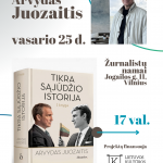 Vasario 25 d. 17 val. Žurnalistų namuose įvyks filosofijos daktaro, rašytojo, vieno iš Lietuvos Persitvarkymo Sąjūdžio pradininkų Arvydo Juozaičio knygos „Tikra Sąjūdžio istorija“ pristatymas. Tai knyga, parašyta žmogaus, kuris tiesiogiai stovėjo prie Sąjūdžio ištakų ir aktyviai kovojo už Lietuvos nepriklausomybę. Autorius skaitytojams pateikia unikalų, asmenišką ir dokumentuotą žvilgsnį į lemtingą mūsų valstybės lūžį. Vakarą ves žurnalistas Audrys Antanaitis. Maloniai kviečiame dalyvauti ir kartu pasinerti į gyvąją Lietuvos istoriją! Projektą finansuoja Lietuvos kultūros taryba.